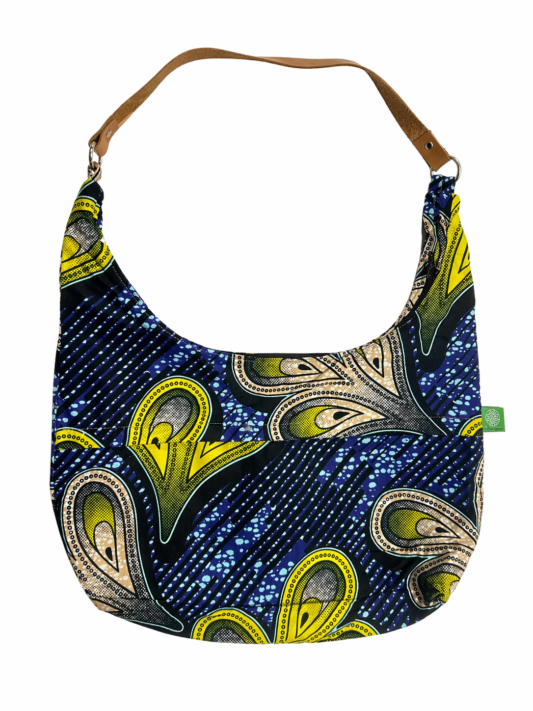 Our new leather handle shoulder bag is beautiful! The soft leather handle gives the bag a bit of an elevated feel and is a lovely compliment to our vibrant African fabrics. The bag has zipper closure, outside zipper pocket, and 2 small pockets inside. Cotton twill lining.